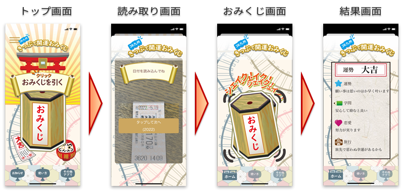切符の番号と日付、スマホの固有IDを使って抽出 同日、同じ端末と切符で何回実行しても同じ運勢結果を表示させます